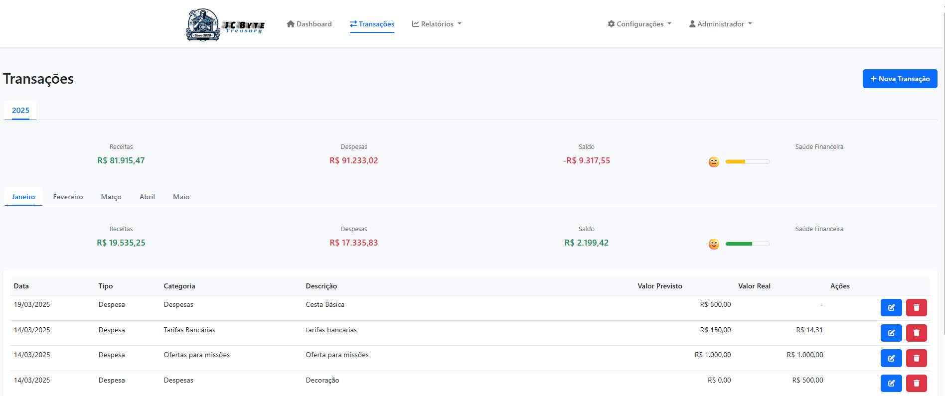 Professional financial management and treasury system developed to improve control and management of financial resources. Designed especially for churches and religious organizations, it offers a complete solution for managing days, offerings and expenses, as well as transparency for members.